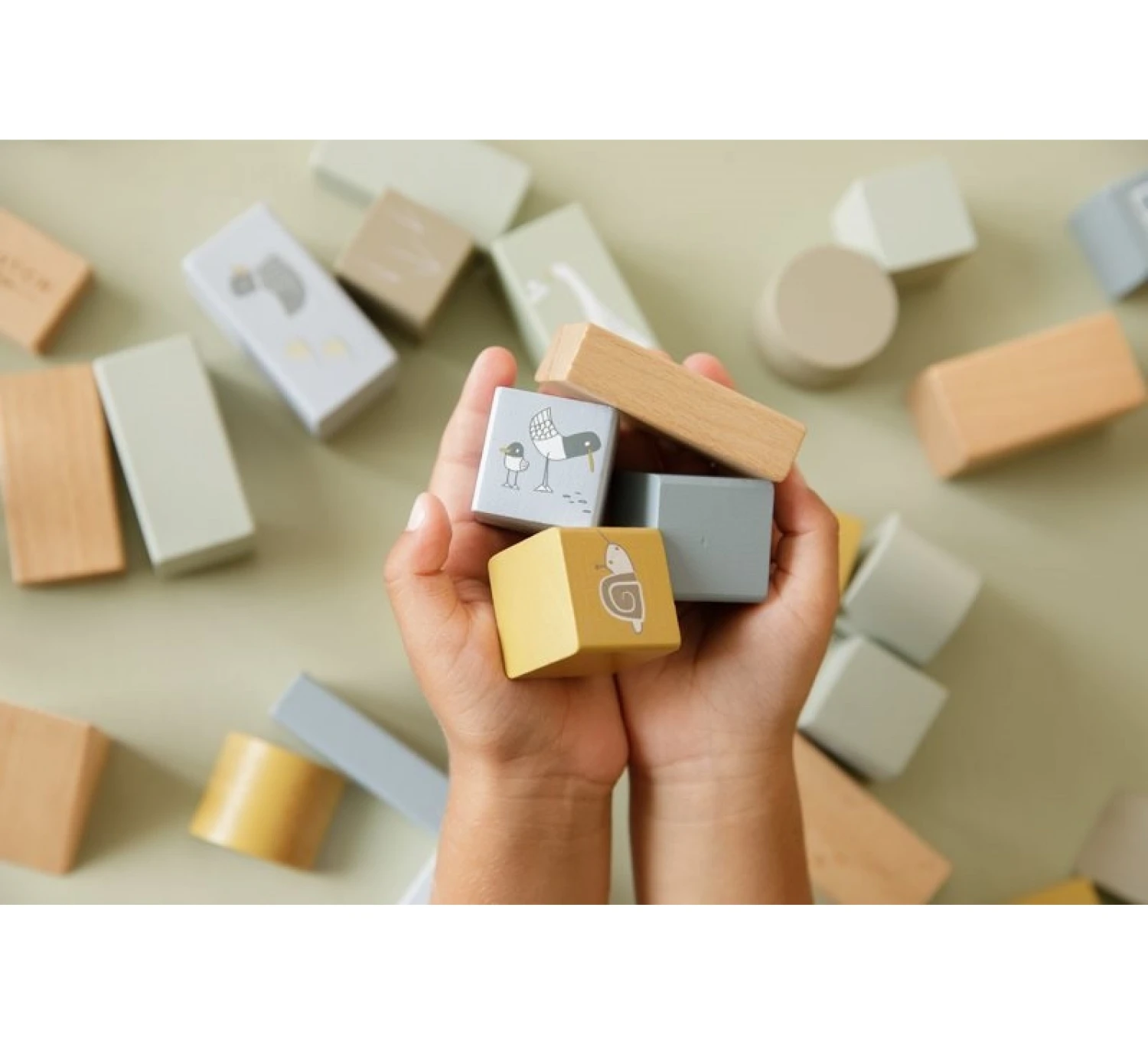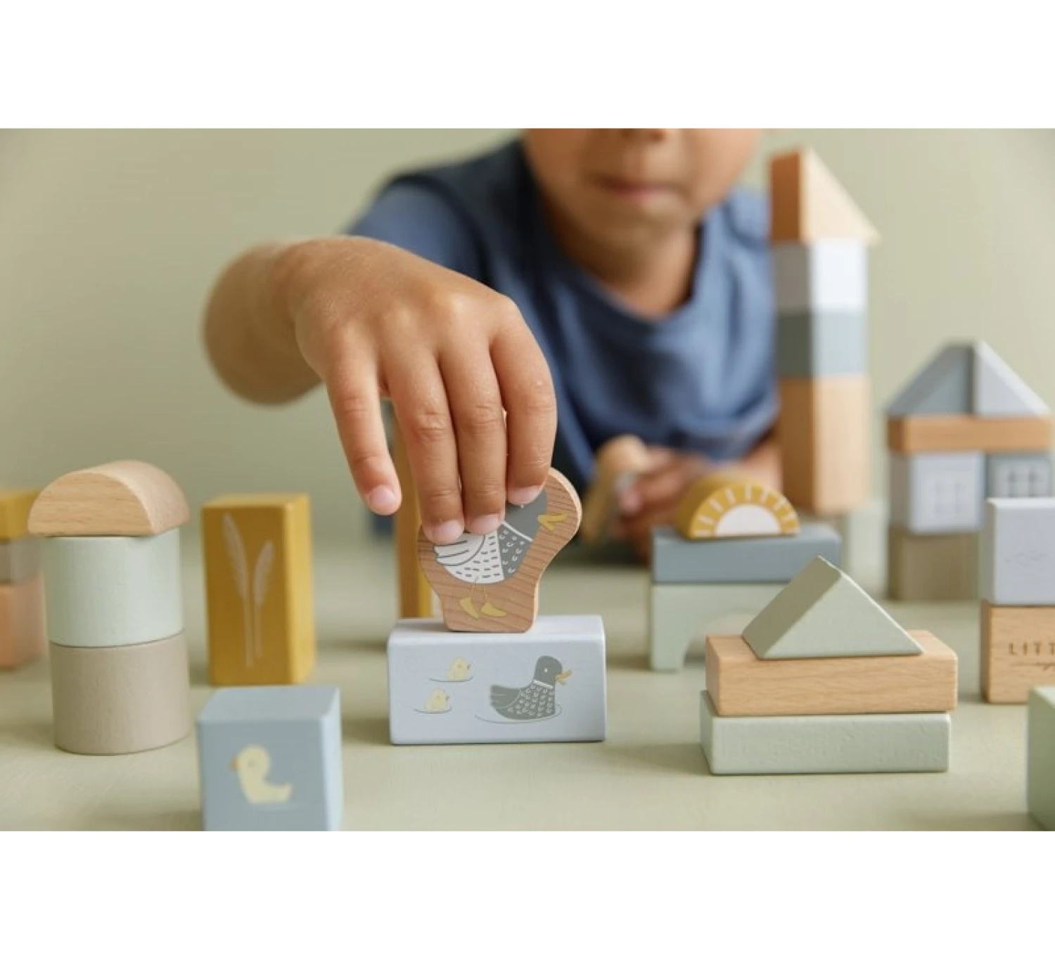 Deze houten blokken in ton zijn onmisbaar. In de ton zitten maar liefst 50 houten blokjes met mooie prints zoals Little Goose en zijn vriendjes op het platteland. Stapel de verschillende blokjes om de leukste figuren of torens te bouwen. De blokken staan garant voor heel veel bouwplezier en kunnen makkelijk opgeborgen worden in de ton!