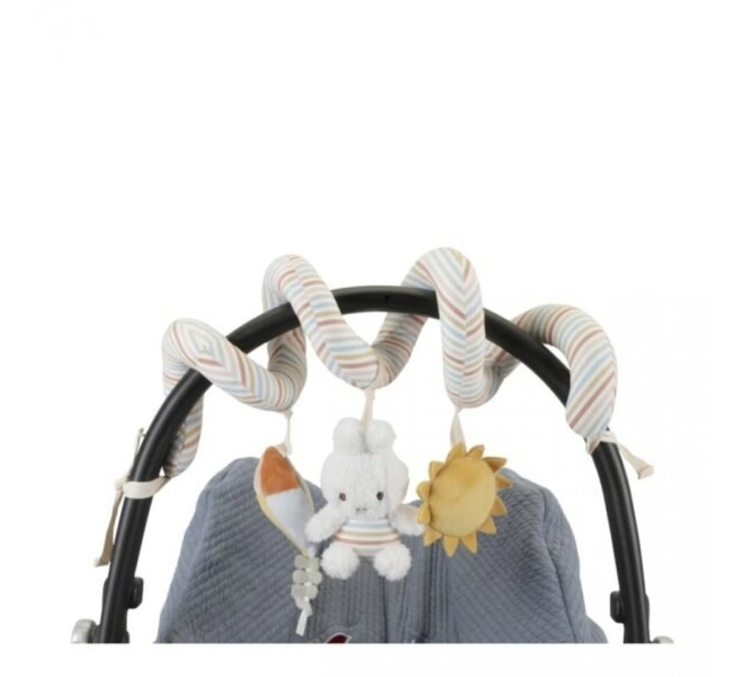 Probeer nijntje maar te pakken! Deze wagenspanner is niet alleen mooi om naar te kijken als je onderweg bent, hij nodigt ook uit om te spelen. nijntje en de vlieger en zon uit de Vintage Sunny Stripes-collectie van Little Dutch hebben elk een functie om te ontdekken. Vind het ratelende geluid, het piepen en knisperen! Bevestig de wagenspanner gemakkelijk aan het autostoeltje of de kinderwagen en je kleintje zal zich vermaken als jullie onderweg zijn. Ook goed voor de hand-oogcoördinatie!