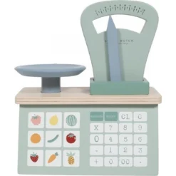 Stel je voor dat je je eigen winkeltje hebt voor groenten en fruit. Met deze mooie weegschaal ben je net een echte groenteboer. Weeg de producten en bereken de totale prijs voor je klant. Of gebruik de weegschaal tijdens het spelen in de keuken om de ingrediënten voor je favoriete recepten te wegen. De speelgoedweegschaal is niet alleen geweldig voor rollenspel, maar helpt ook om de sociale, motorische en wiskundige vaardigheden van je kleintje te ontwikkelen. Combineer met het snijfruit en de snijgroente voor nog meer speelplezier.