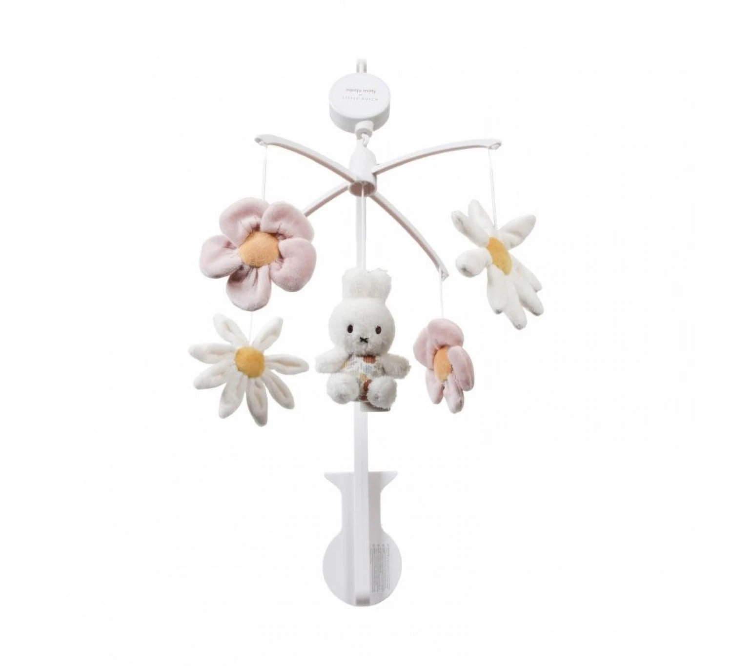 Volg nijntje als het liedje begint te spelen! Ze wordt omringd door de mooiste bloemen uit de Vintage Little Flowers collectie van Little Dutch. Terwijl de bloemen en nijntje rondcirkelen, kom je lekker tot rust door het lieve muziekje. Heerlijk entertainment voor je kleintje dat de visuele ontwikkeling stimuleert. De muziekmobiel is geschikt vanaf de geboorte tot 6 maanden en kan eenvoudig aan een ledikant of box worden bevestigd.